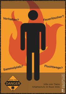 Die Grundlagenveranstaltung “Aspekte der Bildgestaltung” widmet sich in diesem Semester der Gestaltung von Plakaten zum Thema “Gesundheits- und Arbeitsschutz”. Ausgangspunkt hierzu bildet die Anfrage des Sacharbeiters unserer Universität. Nach einem anschaulichen “Kundengespräch” stand zunächst eine umfassende Recherche und Zielgruppenanalyse auf dem Programm. Neben den Grundlagen des Graphikdesigns und praktischen Einführungen in die Bildgestaltung (2D, Vektor, Pixel, DTP) ist es das erklärte Ziel der Teilnehmer, für den Gesundheits- und Arbeitsschutz im universitären Alltag zu sensibilisieren. Die ersten Entwürfe hierzu sehen bereits sehr vielversprechend aus …