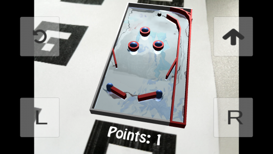 Zur Idee: Vor dem Hintergrund begrentzter Zeit und Ressourcen wurde die AR-Integration eines Gelegenheitsspiels in Betracht gezogen; idealerweise mit Einbeziehung von physikalischer Interaktion (Gyroskop, Accelerometer) sowie mehreren Markern. Inhaltlich wurde sich auf die Umsetzung eines Flipper-basierten Spiels geeinigt, mit mehreren auf Markern basierten Szenen und einer durch Schütteln gesteuerten Tilt-Funktionalität. Die Szenen lassen sich von nahezu allen Blickwinkeln betrachten, solange die jeweiligen Marker erkennbar sind. Designmäßig besitzt jede Szene eine unterschiedliche Stilrichtung sowie jeweils eine eigene Farbpalette mit verschiedenen Assets die sich an einer low-poly Modellierung orientieren. Realisiert wurden 3 Welten: Die Eiswelt, die Waldwelt und die Candywelt.